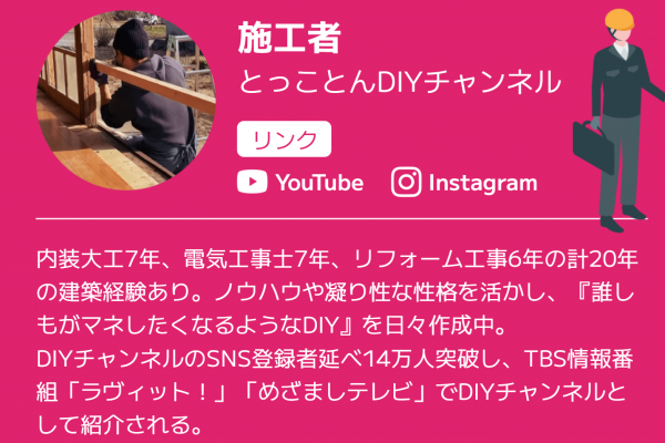 上記のような課題に対し、『自身のDIYをもっと広い範囲で役立てたい』『困っている大家さんを助けたい』と手を挙げいただいたのが、DIY系YouTuberのとっことん様です。