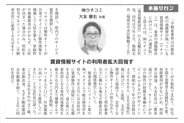 2019年9月号「ふくおか経済」に弊社代表の取材記事が掲載されました